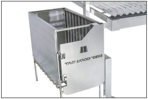 This insert-style Tagwood Argentine Grill without firebricks is designed to be included in a custom outdoor kitchen.