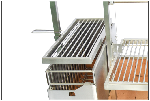 Constructed from 100% 304 stainless steel, this Argentinian grill features five distinct cooking zones: a main height-adjustable grate, a griddle for vegetables, a clamp grill or interchangeable lower grill, and a secondary height-adjustable grate — all designed for precision, performance and versatility.