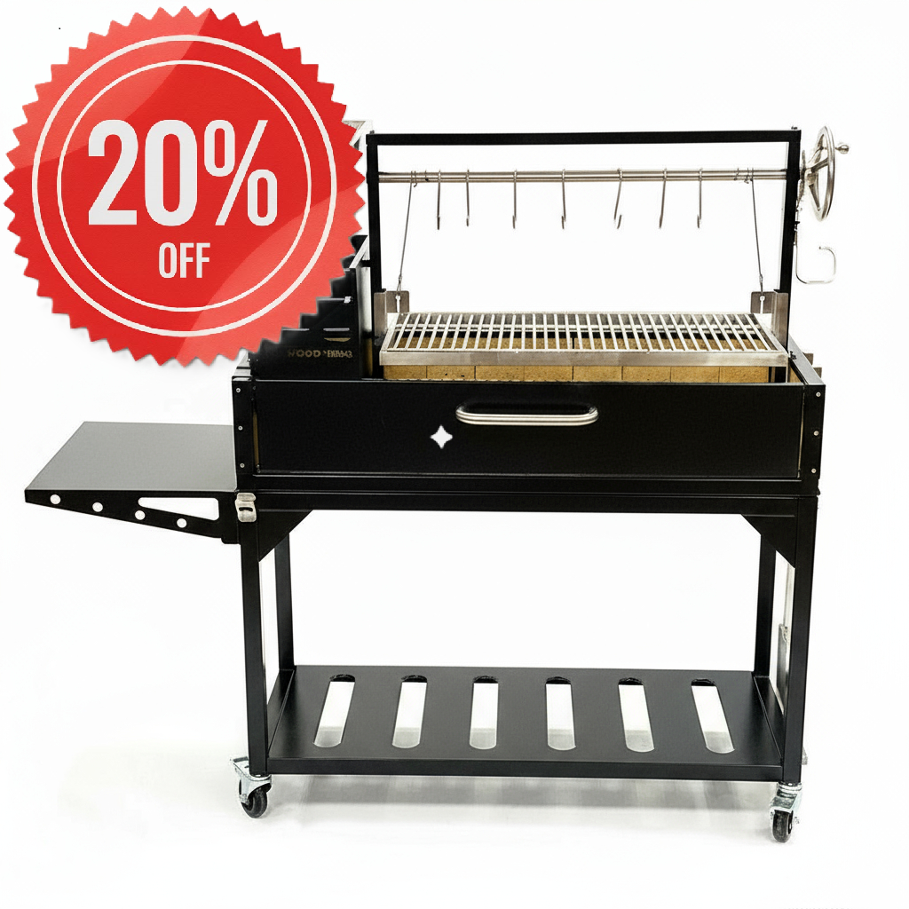 Our Freestanding Argentine grills are simply masterpieces. Crafted from 304 stainless steel and/or heavy cold-roll steel with heat-resistant paint to guarantee their performance. These grills boast complete versatility, featuring convenient hooks for food hanging, secondary grates for impeccable searing, and the added advantage of interchangeable griddles.